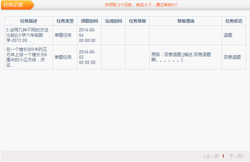 任务记录界面展示了您获取和处理的所有任务的基本信息,以及这些任务的状态、等级以及等级评定理由等信息。